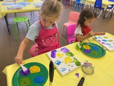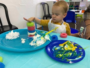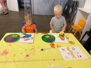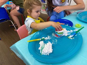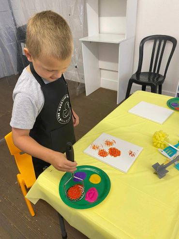 Each child will go home with an 8x10 masterpiece painted by them with the "tools/technique" of the day which could be balloons, kitchen or bathroom items, toys, or even pool noodles!